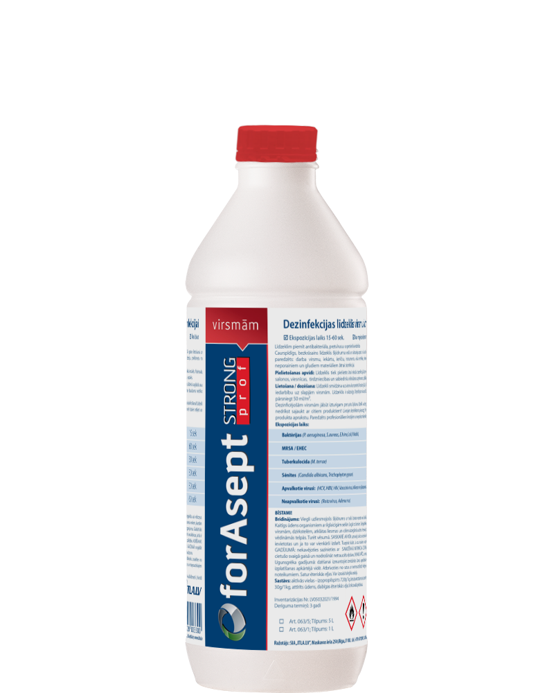 "forAsept Strong PROF" Dezinfekcijas līdzeklis virsmu un priekšmetu ātrai dezinfekcijai, 1 l