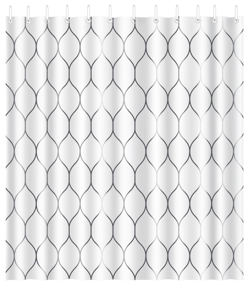 Vannas istabas (dušas) aizskars, izmērs platums 180 cm., garums 200 cm., balts vai pelēks, materiāls poliesters, pielietošanas veids ūdeni atgrūdošs, viegli kopjams, komplektā 12 gredzeni