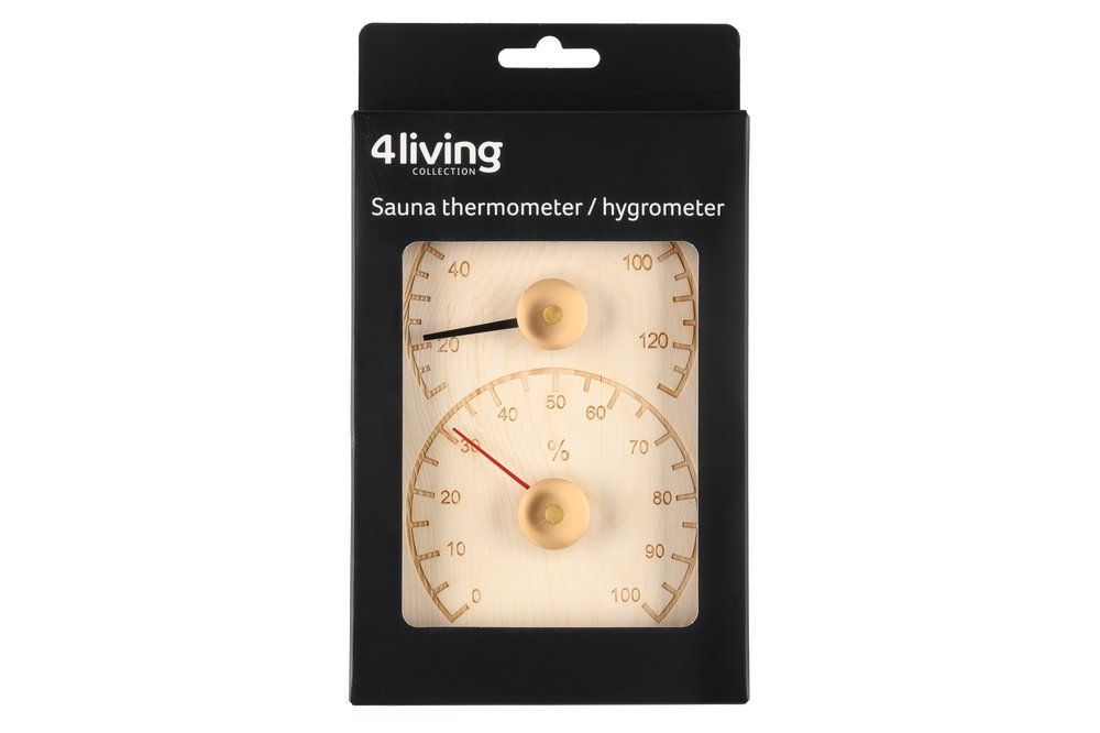 Традиционный деревянный термометр и гигрометр для сауны. Термометр показывает температуру в градусах по Цельсию (0–120 °C). Гигрометр показывает влажность воздуха в процентах (0–100 %). Четкие цифры и линии облегчают считывание показаний даже во время парения. Датчик предоставляет точную информацию об условиях в сауне, что помогает поддерживать приятную и безопасную атмосферу. Идеально подходит как для домашней сауны, так и для дачи.