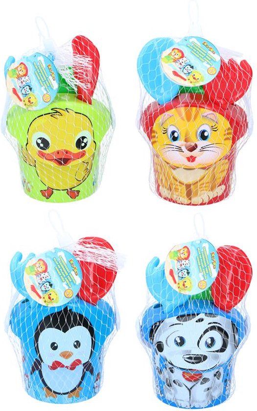 Spaiņu komplekts ar dzīvnieku attēliem. Komplektā ietilpst spainis, lejkanna, grābeklis un lāpsta.