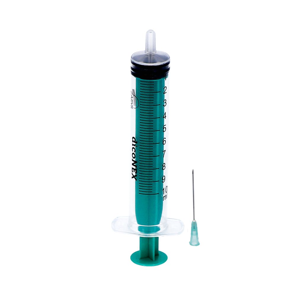 Vienreizējās lietošanas šļirce, 3 daļas ar adatu blakus šļircei, 10 ml Luer savienojums, zaļš virzulis, bez ftalātiem_A100 dicoNEXRažotājs: ZARYS INTERNATIONAL GROUP SPOLKA ., Polija.