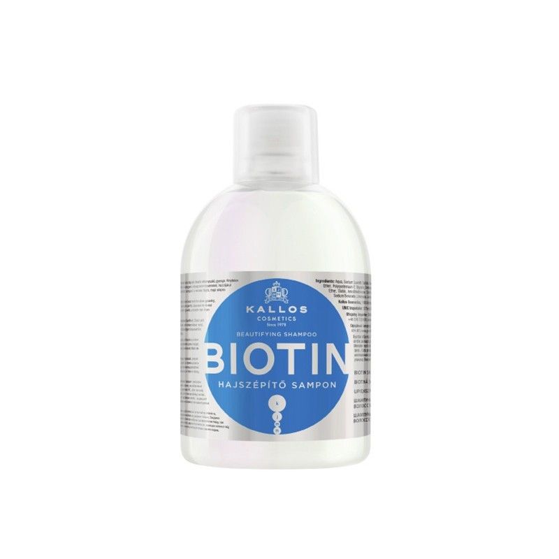 Kallos Biotin šampūns aktivizē matu folikulu vielmaiņu, veicina veselīgu matu augšanu un aizsargā pret priekšlaicīgu sirmošanu. Pateicoties aktīvajai sastāvdaļai biotīnam (H vitamīnam), šis vieglais, barojošais matu augšanas šampūns maigi attīra un iedarbojas gan uz matu struktūru, piešķirot matiem veselīgu izskatu, gan uz matu folikulu, stimulējot matu blīvuma palielināšanos.
