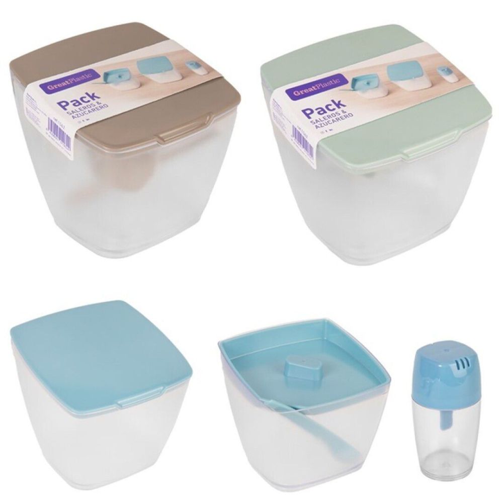 Šis daudzfunkcionālais komplekts ietver: sāls trauku, cukura trauku un galda sāls trauku PS, dažādās krāsās un kvadrātveida formā ar caurspīdīgu trauku. Tie ir funkcionāli un eleganti, būtisks papildinājums jūsu virtuvē.